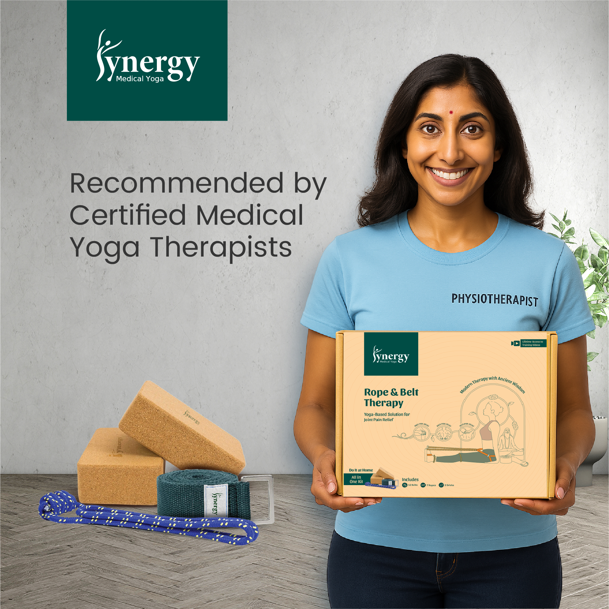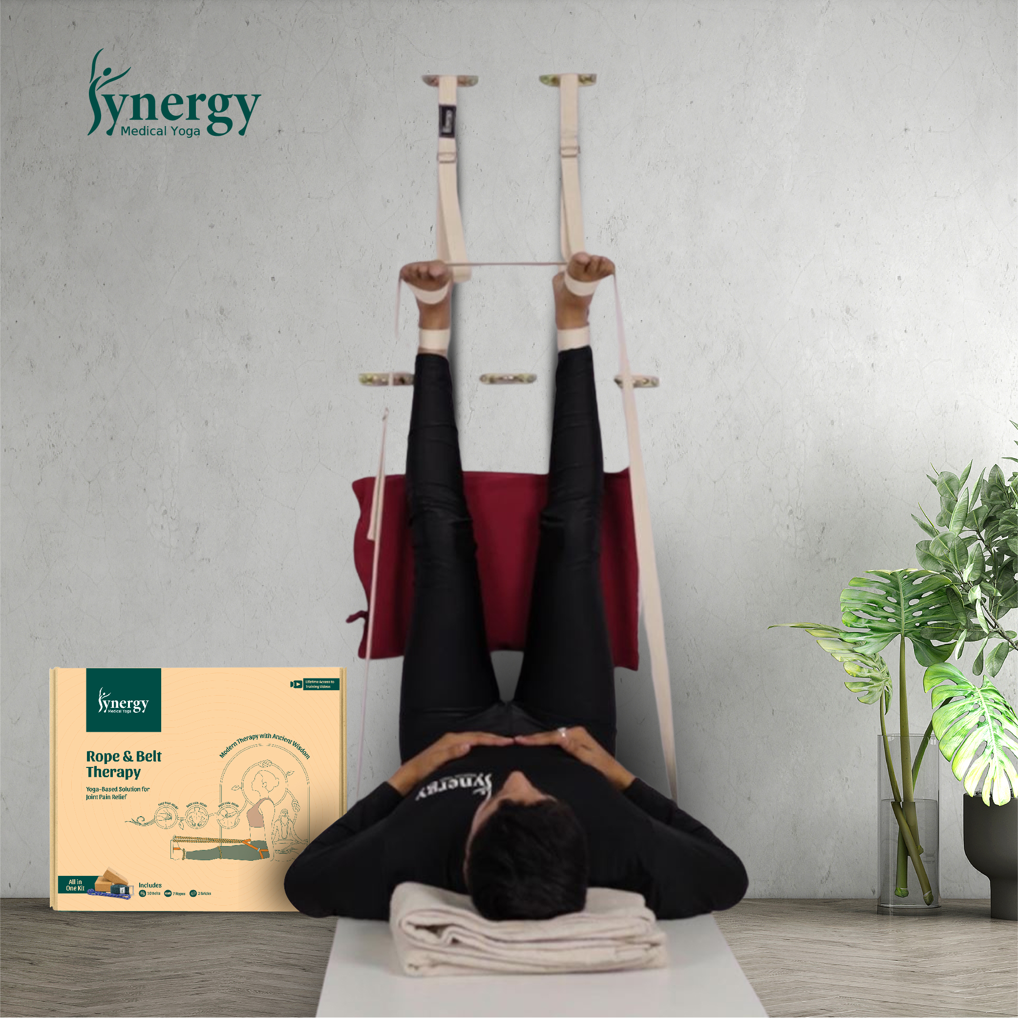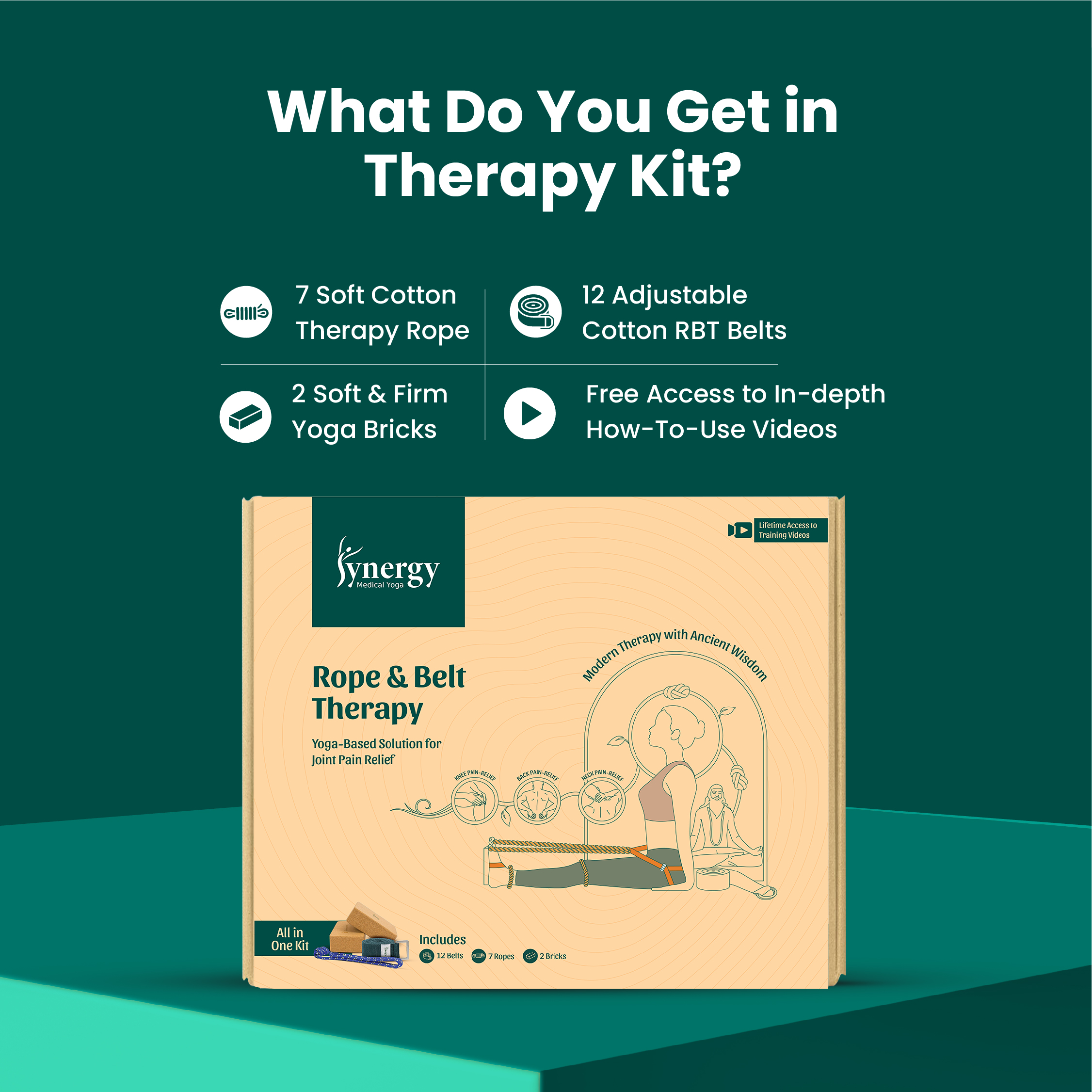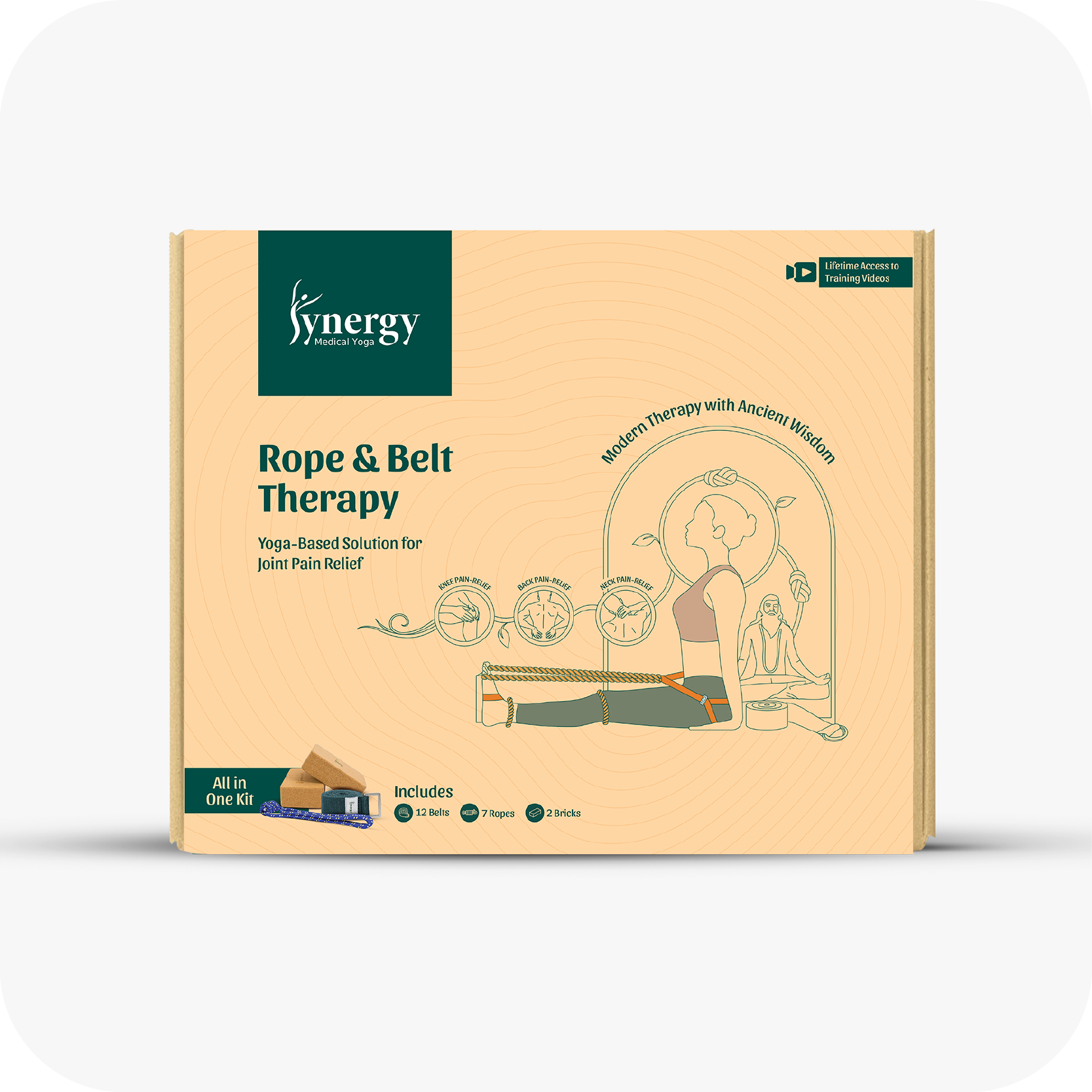 At Home Rope & Belt technique All-in-one Kit is a complete & perfect solution for conservative management of your osteoarthritis knee , lumbar spondylosis or cervical spondylosis. Rope Belt technique is a yoga based and uniquely designed to help people reduce the stiffness, increase the range of motion and discomfort while walking or climbing stairs or bending. It is based on modern anatomy understanding and incorporates along with it the benefits of yogic postures like dandasana , makarasana.