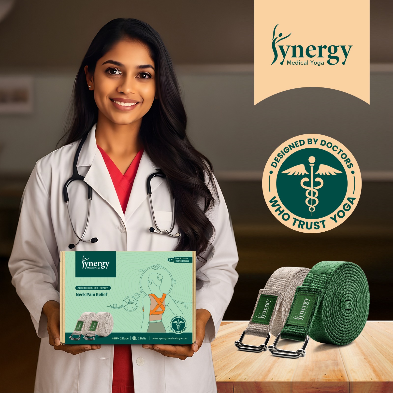 It is based on Medical Yoga Therapy, which improves posture, relaxes tight muscles, and supports spine health.